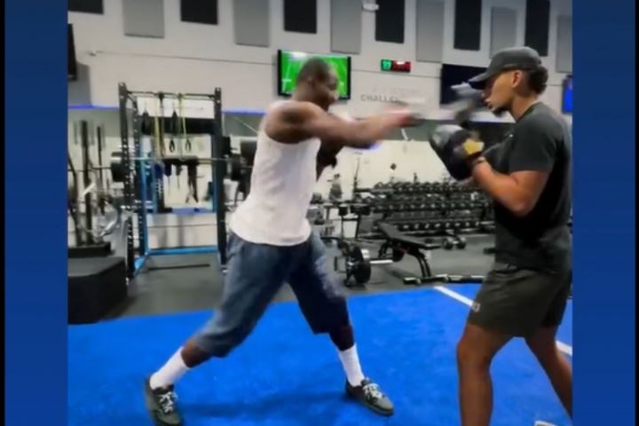 防一手追梦!库明加继续晒训练 但今天练的是拳击