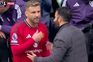 全队庆祝姆伯莫进球时,阿莫林急忙找到卢克肖耳语布置
