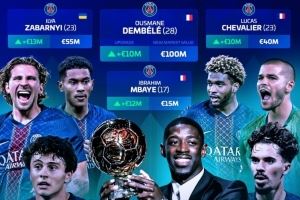 德转列巴黎多人身价上涨:登贝莱、维蒂尼亚、内维斯在列